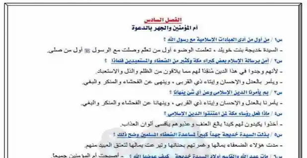 مذكرة تربية دينية شاملة قصة السيدة خديجة بنت خويلد للصف السادس الإبتدائي مذكرات تعليمية