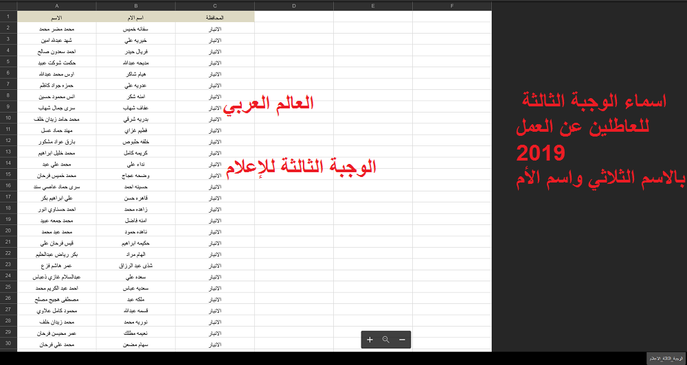 اسماء الوجبة الثالثة للعاطلين عن العمل 2019 في العراق بالاسم الثلاثي واسم الأم للحصول على 175