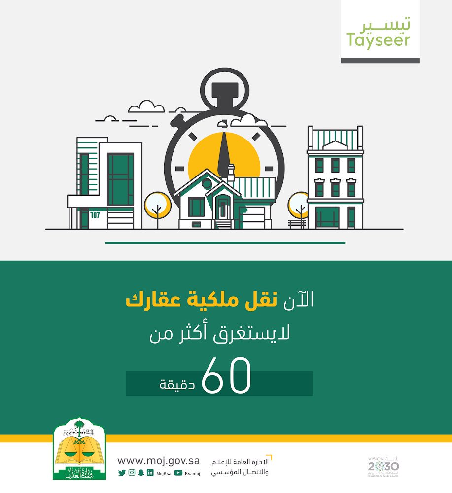 وزارة العدل على تويتر الآن نقل ملكية عقارك لا يستغرق أكثر من ٦٠ دقيقة
