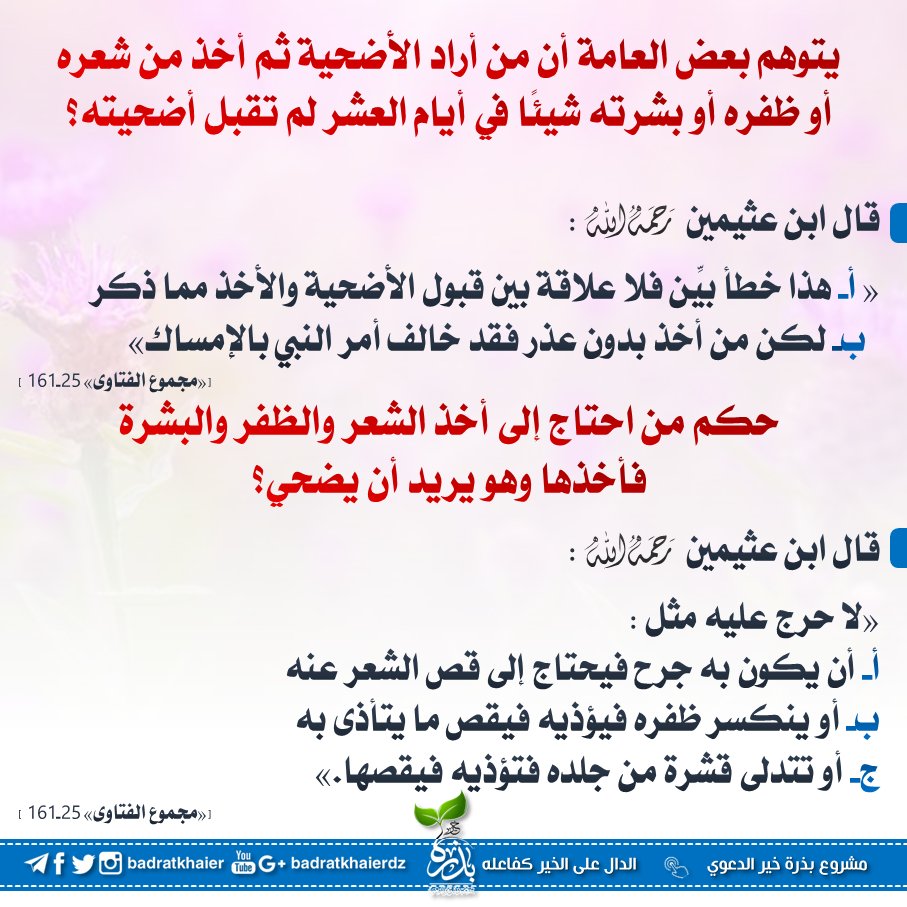 هنا نتعرف واياكم متابعينا الكرام من خلال موسوعة المساعد الشامل على كل ما تريدون معرفته من الاسئلة التالية. من أخذ من شعره أو ظفره أو بشرته بعد دخول عشر ذي الحجة هل قص الشعر يبطل الاضحية الاقتراض لشراء الاضحية ما. 1 كتاب أحكام الأضحية والزكاة للإمام ابن عثيمين.